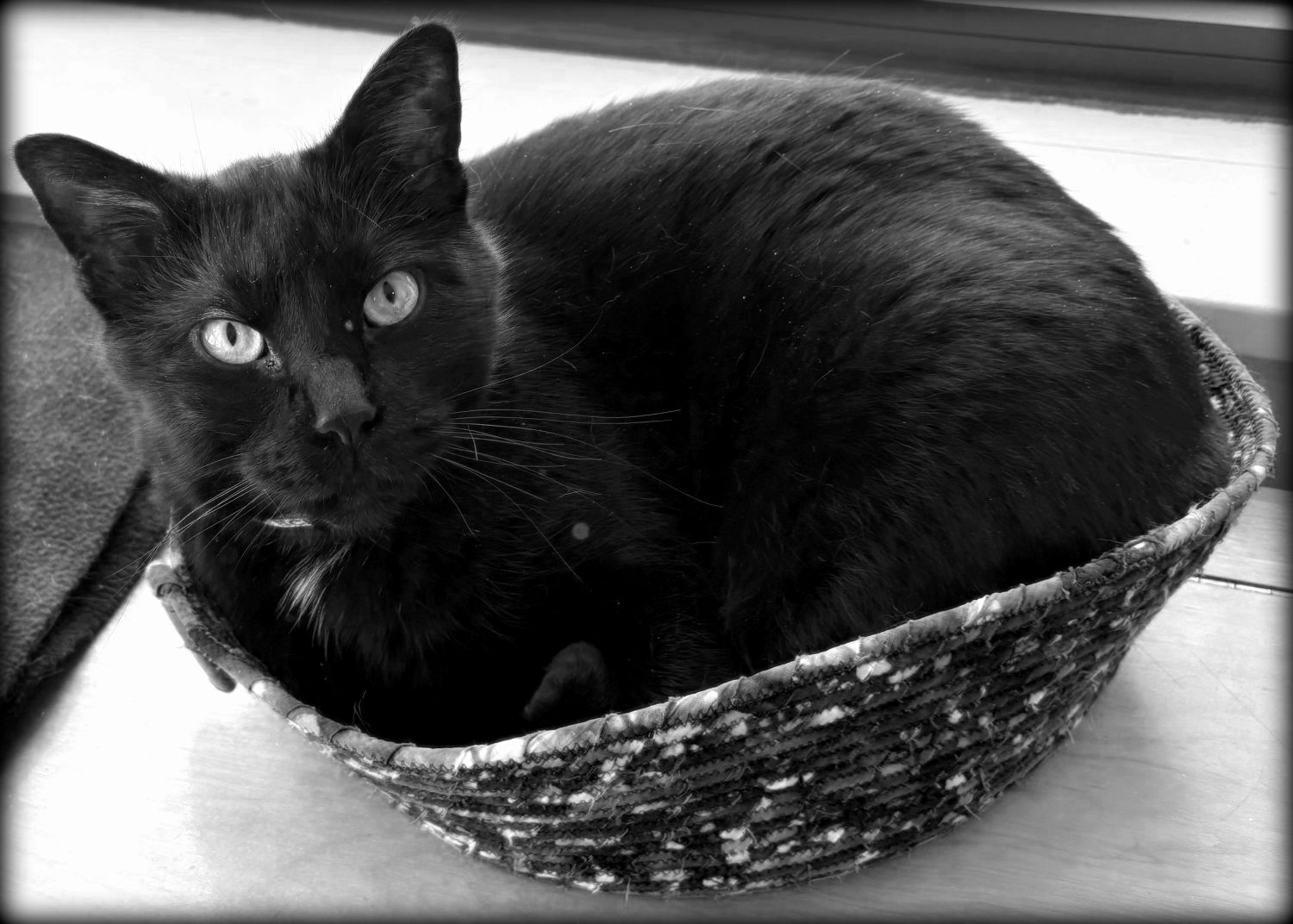 Harry doesn’t fit so well in the fabric basket, but that doesn’t matter to him.