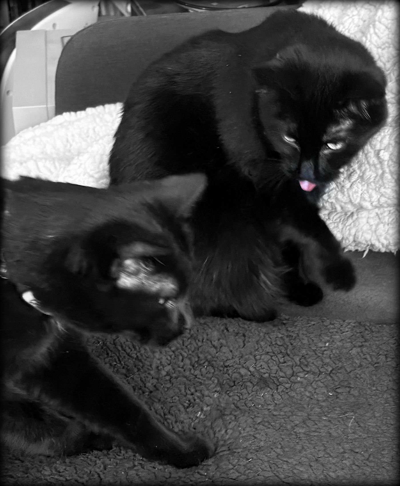 Harry on the move, Polly blep.
